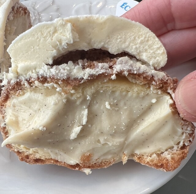 バニラビーンズが沢山入ったエシレバターを練り込んだカスタードクリームはシュー皮の中に食べるとはみ出るほど満タンに入っています。濃厚でバターをしっかり感じますが後味はスッキリ