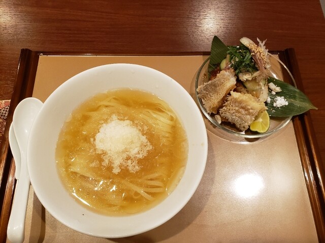 「麺 紡木」プレミアム新麦と鯛の冷汁&甘鯛の松笠揚げ付!