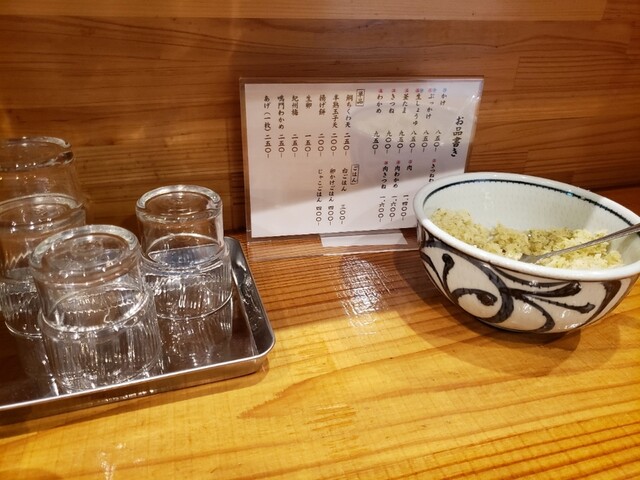 カウンターには海苔天かすが置いてあるので後半少しだけ投入しました。