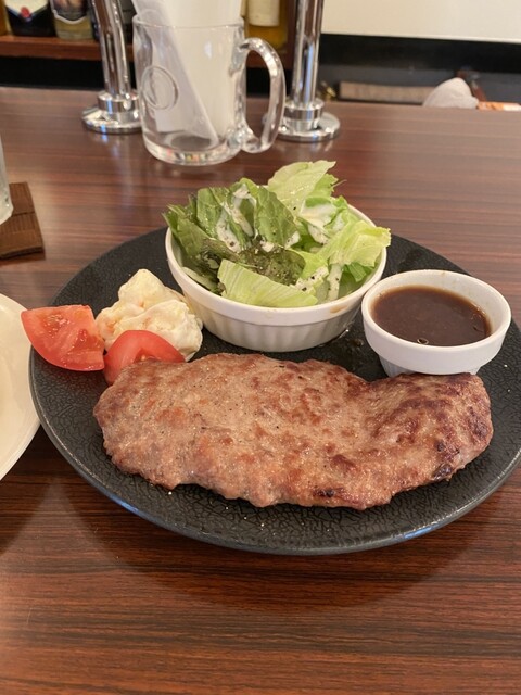 ハンバーグはかなり平べったい。そして思ったより大きく感じた。