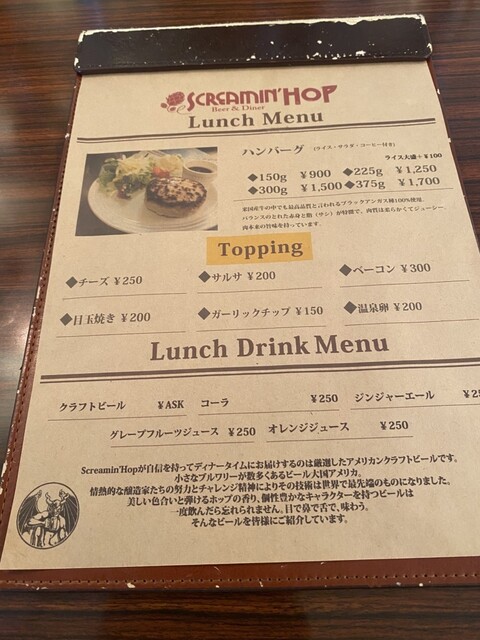 ハンバーグは重さ別で値段が4段階に分かれてる。