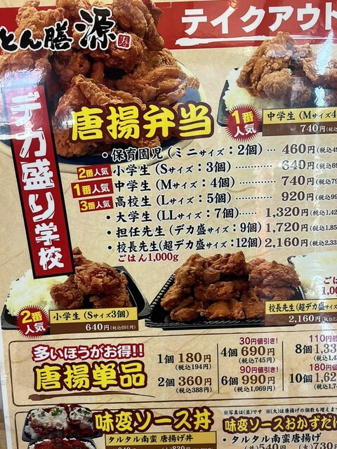 一番人気は、Mサイズの唐揚げが4個入った中学生だそう。