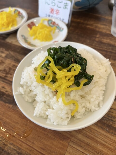 夜に来るのは初めて、お得そうなお二人様セットにしました。好きなラーメン2杯、唐揚げ5個に、無料でご飯2杯がついてきますっ。唐揚げ5個って絶対やばい、多すぎる、って思っていました。想像通り多かった、、けど味が最高に美味しかったぁ。唐揚げ一個残ったからお持ち帰りしました。袋無料でもらえるのも嬉しい。
