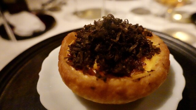 中には大ぶりにカットされたアワビの肝で和えたアワビ、黒トリュフ。まずこの発想よ。