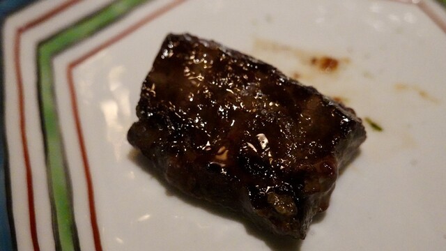 一瞬、炭かと思った。見た目は真っ黒で全く食欲をそそらないビジュアルだがこれが柔らかく、噛むごとに旨味に溢れている。
