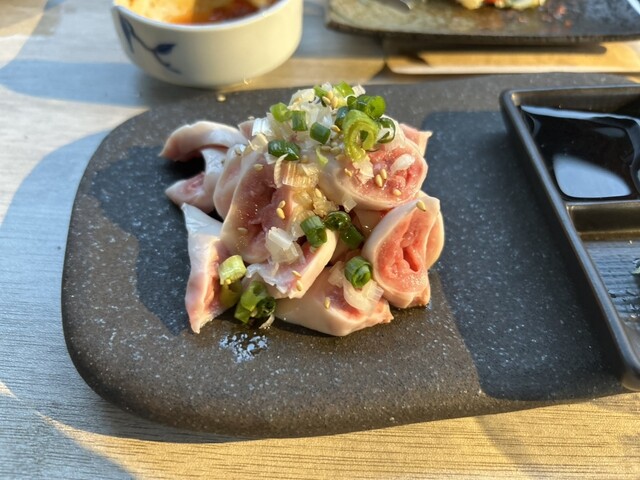 そしてスライスミノ。ミノって食べさせ方が一辺倒だけどこのミノは生ハムみたいに薄くスライスされててミノの革命です。