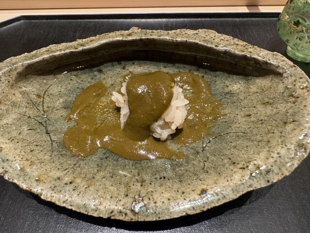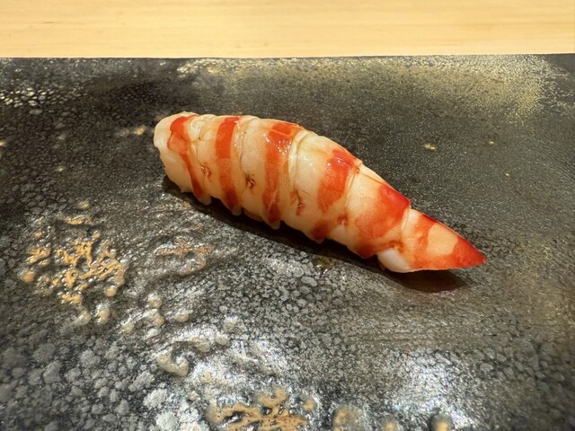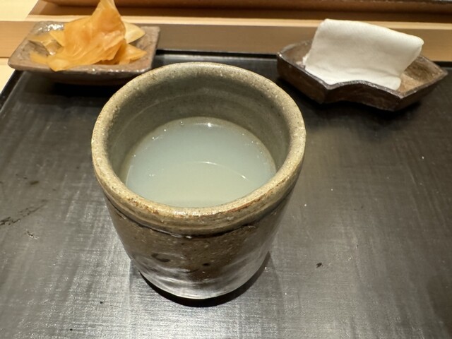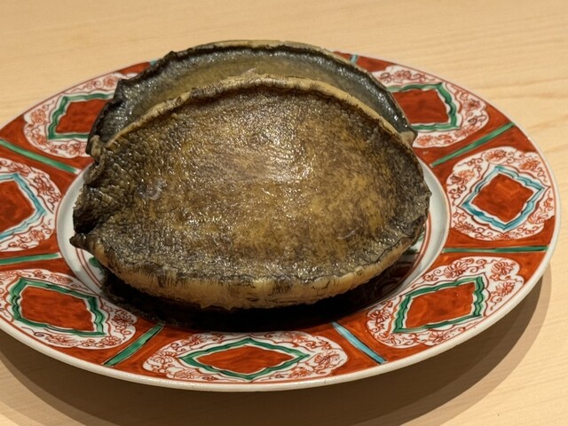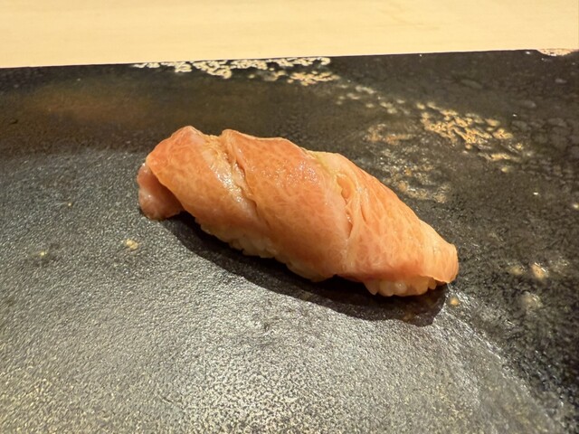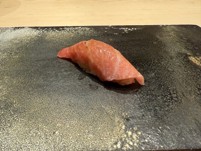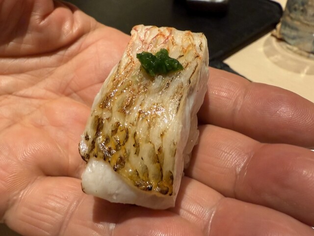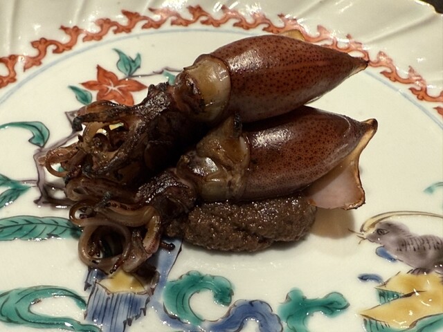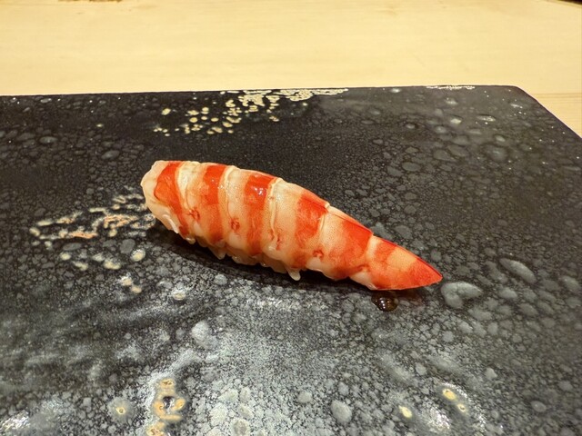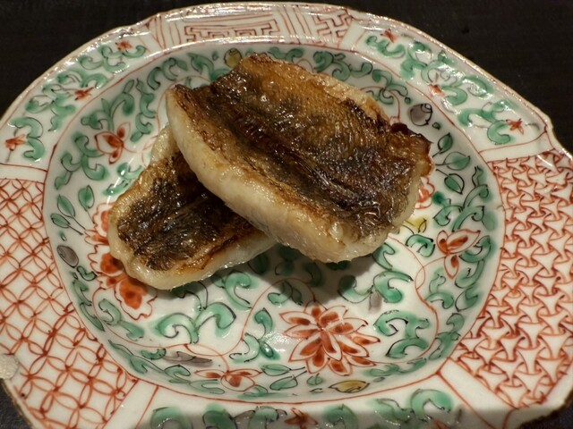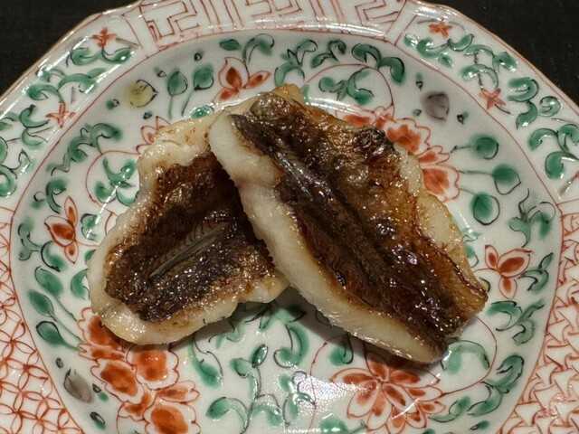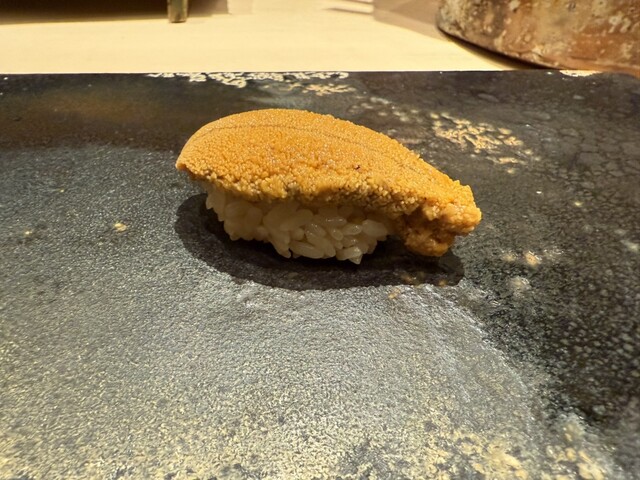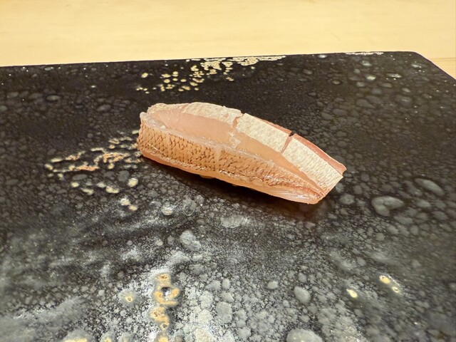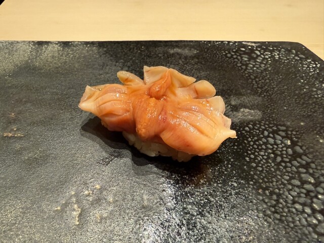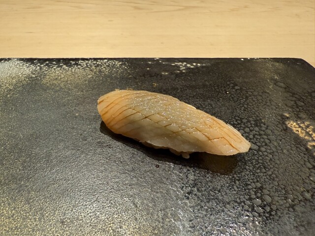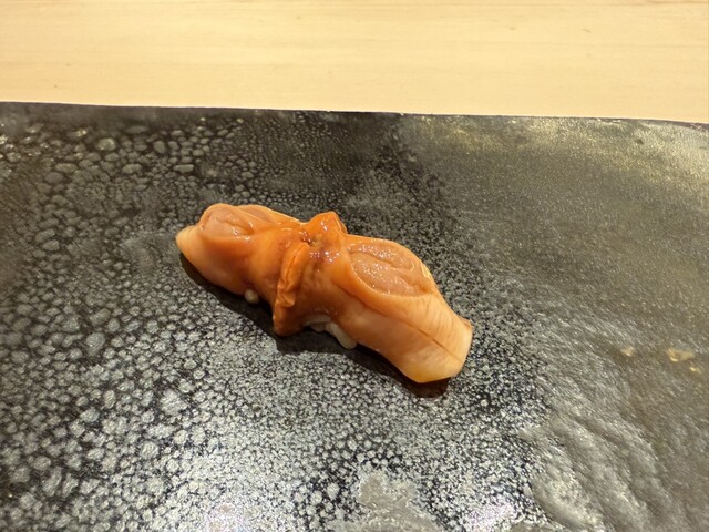 ヤイトガツオ、鰆、河豚の唐揚げと煮凝り、鰯、カワハギ、海鼠、鮟肝と柿、唐墨、小肌、天然車海老、越前蟹の茶碗蒸し、赤貝、馬糞雲丹、大トロ、赤身、中トロ、車海老の頭、雲子、干瓢巻き、スープ、卵焼き