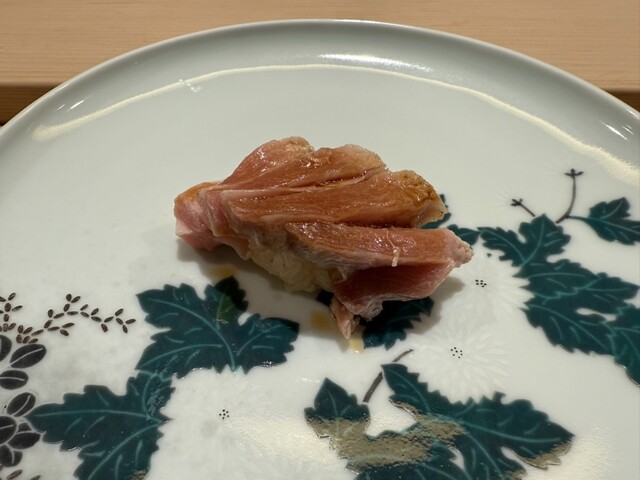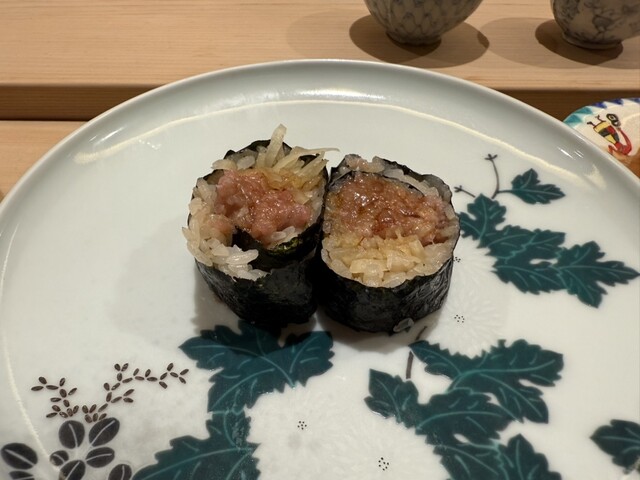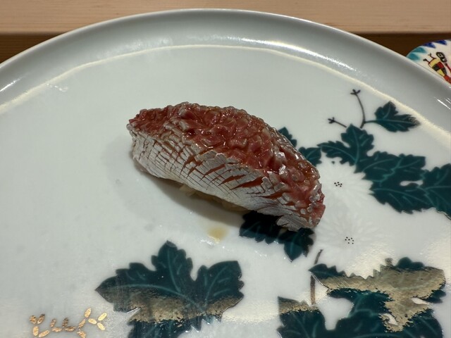 蛸、虎魚、虎魚の内蔵、真魚鰹、鮑と雲丹、中トロ、大トロ、大トロ、剣先烏賊、鯵、甘海老、渡り蟹、雲丹、鱸、トロたく、アイスクリーム