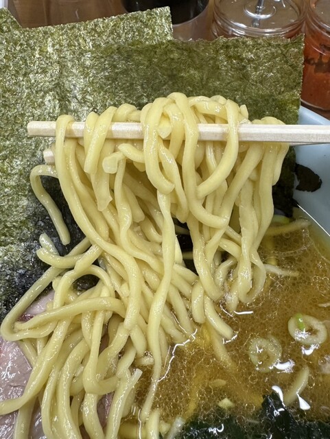 ラーメン中盛を麺かため、味濃いめ、あぶら多めで頼み、ボツ玉子をトッピング。あとはライス小も。