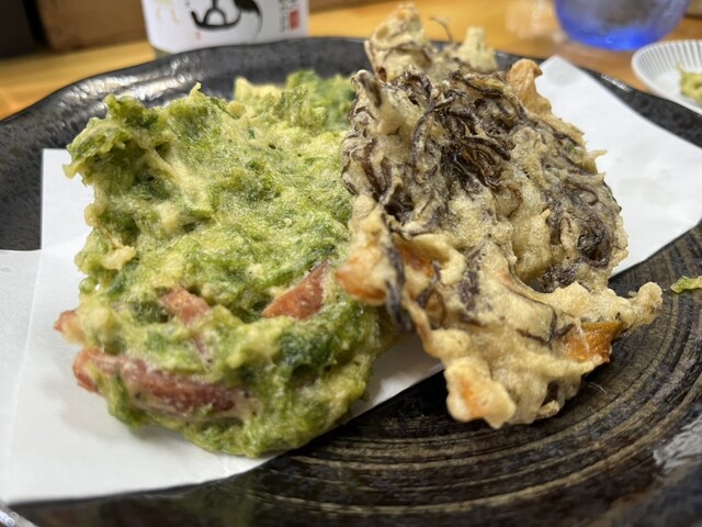 アーサーの天ぷら、ナーベーラーの味噌炒め、マグロの肉団子、もずく餃子、車海老の塩焼きなど、土地のものを使って作られた料理は、どれも美味!