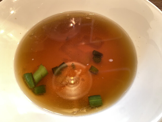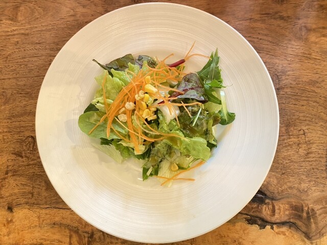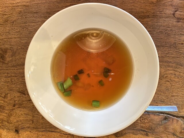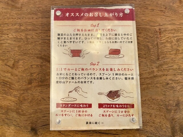 最初にサラダとスープが来たので食べ、メインが来るまでの空いた時間はぜひテーブルにある「オススメのお召し上がり方」をご覧いただきたい。
