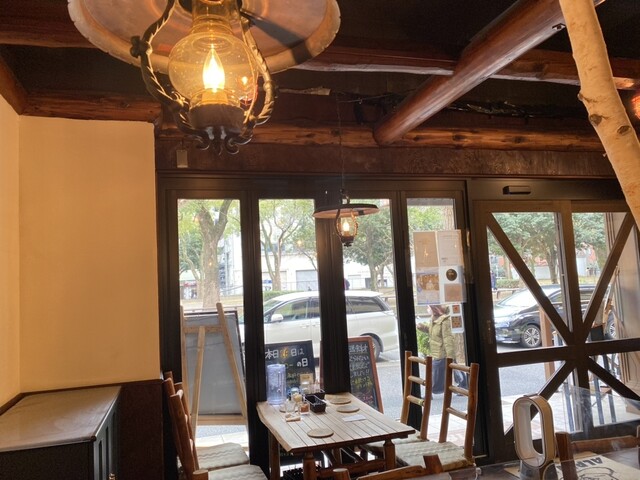 こちらの雰囲気は、木の素材をふんだんに使った温かみのある空間で、ついた席は一枚板の天然木を使用した大きいテーブルでこれまた味があってオシャレだけども落ち着きもありどこか小屋でこれからご飯を食べるような感覚。