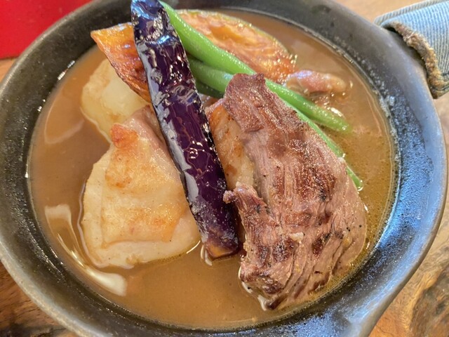 スープがサラサラしていてすごく飲みやすい(食べやすい)けども、素材を大事にコクもあって上品なスープカレーといった印象。