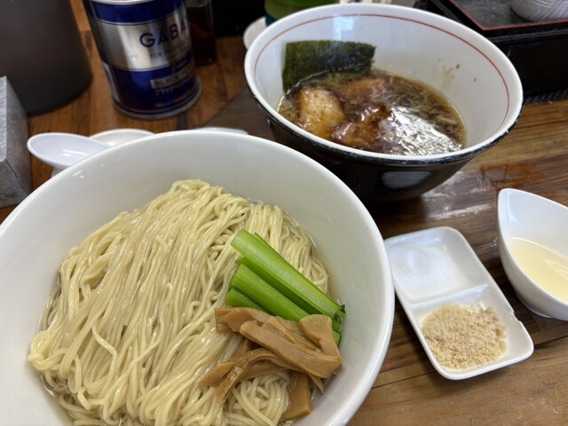 つけ汁は濃いめの味で昆布水が絡む麺で浸すとバランスのいいお味に