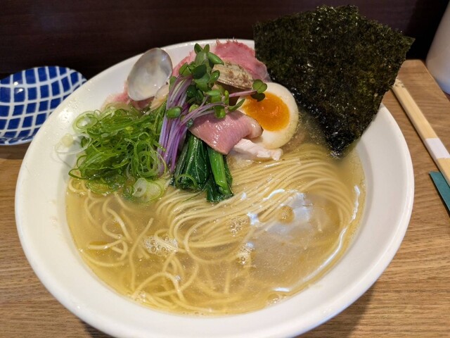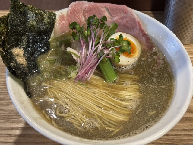 休日の14時ぐらいに伺いました。4名ぐらいの待ち。まずは食券を購入して待つシステム。20分ぐらい待ちカウンターに着席。濃い煮干し醤油、本日の煮干し黒炊き1,090円税込と、2杯目限定、釜玉中華500円税込を注文。待つこと10分ぐらいで着丼。かなり高い評価なので期待はしていたが、麺もスープも想像を超えてくる旨さで度肝を抜かれる。釜玉にもやられた。わさびとお酢の相性のよさにビックリ。なによりも店主の接客に感動。店主は効率よく一杯一杯丁寧にラーメンを仕上げている。本日の煮干し醤油メジカ醤油が売り切れの為、是非リベンジしたい。大変美味しくいただきました。ご馳走様でした。