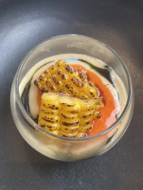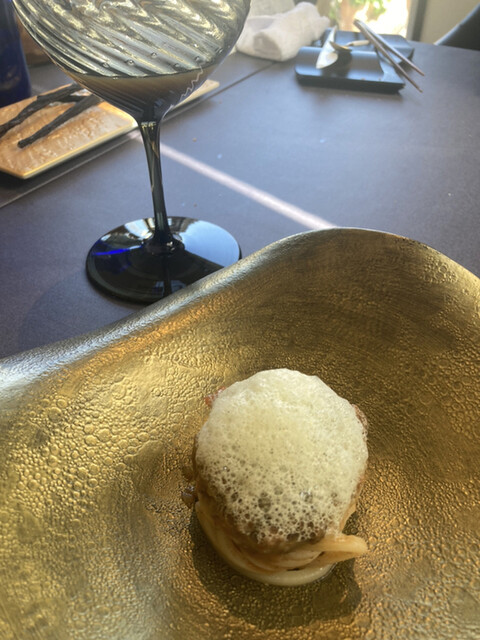 特に印象的なのは、料理全体から感じられる“遊び心”。実験的でありながら、しっかりと美味しさに着地させるバランス感覚はさすがの一言です。まさしくシェフの好奇心とワクワクが詰まった実験室にお邪魔しているかのようで、次は何が出てくるのだろうと自然と期待が高まります。