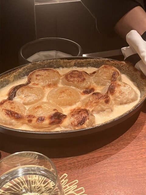 印象的だったのが、尾鷲産三年熟成の北あかりを使ったグラタン。じゃがいもの持つポテンシャルをここまで引き出せるのかと驚かされる一皿で、あくまで主役は素材そのもの。蒼というレストランの哲学が、最も分かりやすく表現された料理に思えました。
