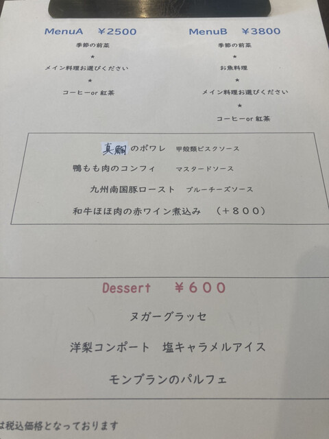 今回もランチにて訪問で、2500円のコースにデザート一品を追加させて頂きました。