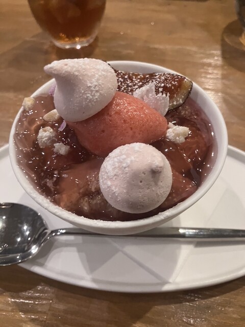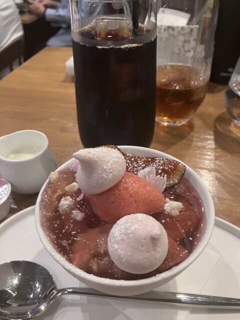 デザートは苺のサバイヨンブリュレと抹茶のティラミスをいただきました。