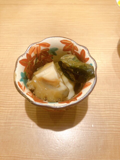 印象に残ったのは、序盤に登場した白子。ひと口いただいた瞬間、静かに震えるほどの美味しさでした。雑味が一切なく、白子そのものの持つ甘みとコクがふわっと広がりながら、後味は驚くほど軽やか。火入れの精密さ、塩の当て方、温度のキープ、そのすべてが完璧で、まさに“素材を最大限に生かす”という言葉を体現した逸品でした。