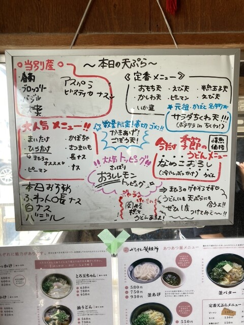 暖簾をくぐるとメニューが貼ってあり、その後ろでは大将ががひたすらうどんを打っていました。