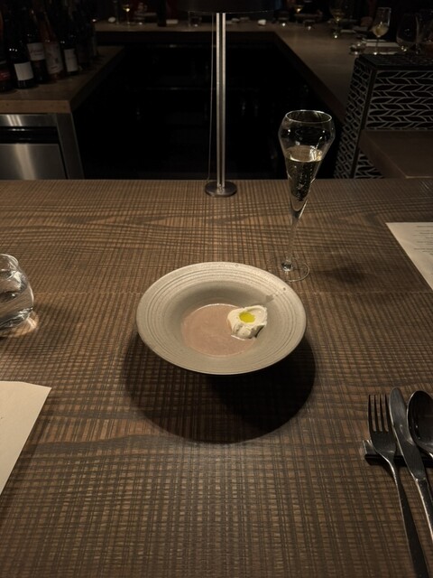 ・マッシュルームのポタージュとマスカルポーネチーズ