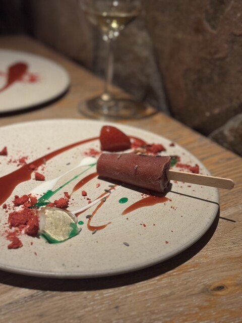 ・苺のソルベ ヨーグルトソース ラベンダーの香り 白ワインジュレ