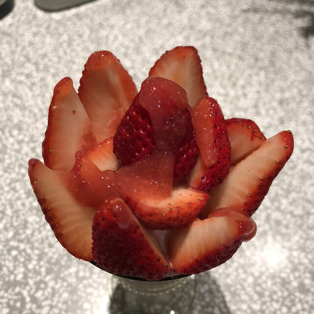 ○バラと桃のパフェ