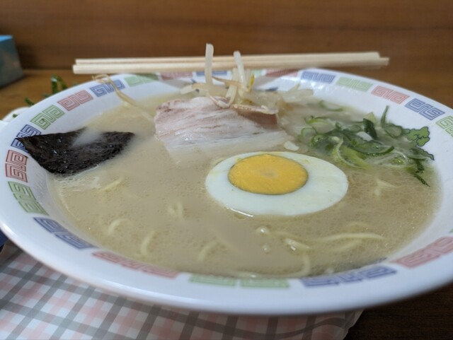 入場して右すぐ。客が来易い、目立つ場所にあるのだから人気店に決まってる…と勝手判断だったがどうやら当たりだったようだ。ラーメン500円はもちろん豚骨だが東京で食うそれとは違い、まろやかで飲み易い。