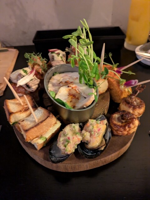 ただ前菜のピンチョス盛り合わせとランプの薪焼きだけで充分満足できる。