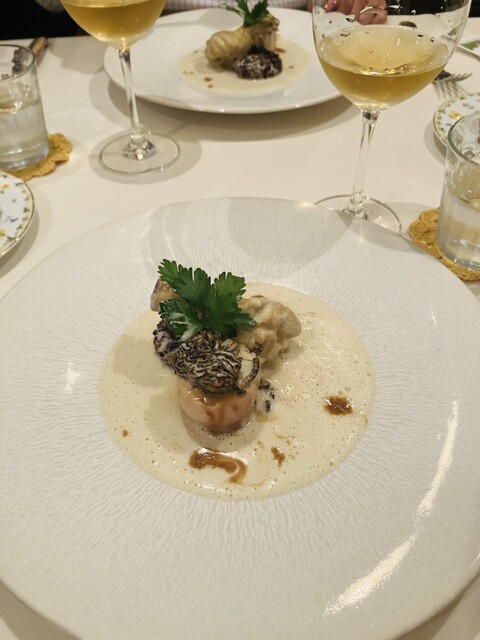 アミューズはエスカルゴを使ったロワイヤル(洋風の茶碗蒸し)、これにクレマンドジュラを合わせて。