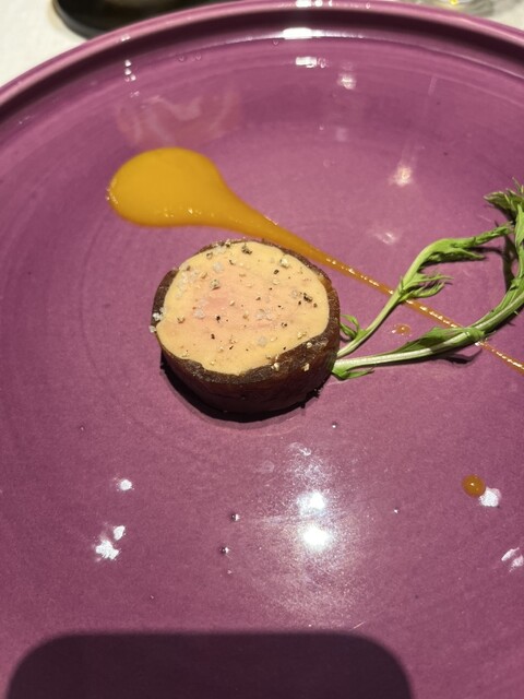 ステファンパンテルのスペシャリテ熟成したフォアグラの奈良漬け巻きトロピカルソース