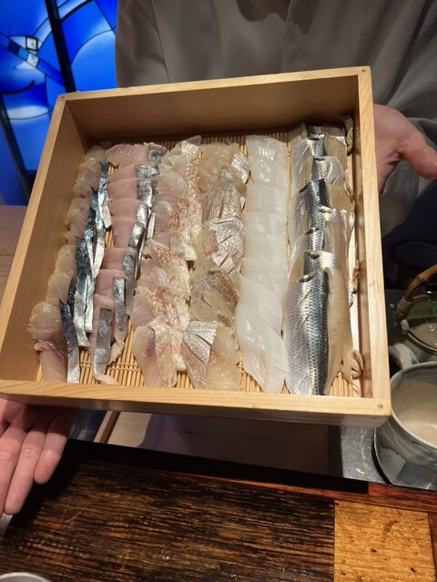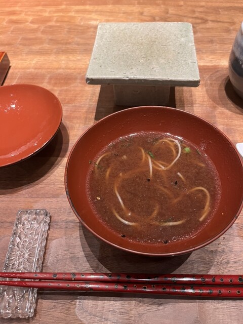 定番鮪にはじまり、夏ということもあり小肌、鯵、鰯と光物、鱚、梭子魚も登場。あら汁は赤味噌仕立て、バランスが良くてとても美味しかったです。