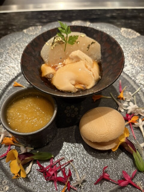 鉄板焼料理長の大江 侑基さんが、幼い頃の思い出から着想を得て作り上げた"お弁当"をイメージした一皿から始まる鉄板焼のアフタヌーンティー