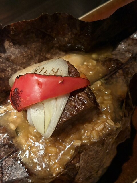 炭火焼き 黒部和牛の柔らか煮の朴葉焼き