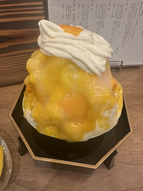 日曜夕方訪問、運良く空いててサクッと入店。橙3400税込。流行って久しいこういう高級かき氷になってから初めて食べたが、マンゴーはとろっと甘いのがたくさん入ってるし(ふるさと納税でもらったやつより甘い)、氷はふわふわで頭痛くならないし、ミルク蜜やエスプーマも美味しかった。こだわりのあんこはあってもなくても。まああった方が変化があってよいんでしょうね。