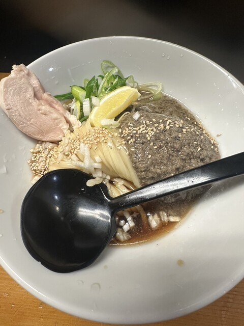 ニボ(鰹節、宗田節、伊吹のいりこ、鯖節)がこれまた美味しい。よくあるニボラーメンより苦味とエグ味がなく、表現が違うかもしれないが冷や汁の汁的な、いろんな旨みが混じった美味しさがある。