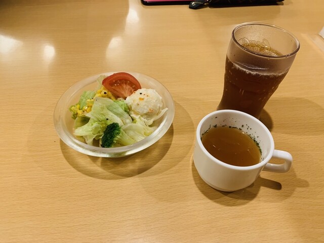 セットメニューに付いてくるサラダと、ドリンクとスープ♪(ドリンクバー、スープバー付きセット)