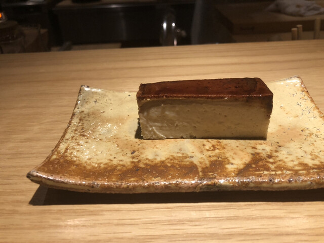 烏賊とカラスミと百合根。烏賊は寝かせてあるのに全く臭みがない!道南出身の技術のあるシェフが烏賊を寝かせればこんなに素晴らしいことができる!!という見本。
