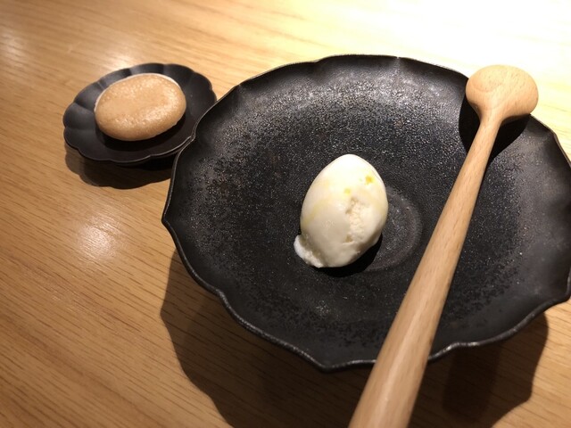 とうもろこしと昆布出汁とお塩だけのスープ。 だけとか言われてるけどものすごく豊かな風味だし、甘味と旨味とがどちらも純粋にダイレクトに来て美味しかった。