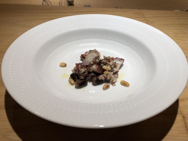 個人的には、ツブとトマト水とすだちの冷製カッペリーニと、イカとポレンタがものすごく美味しかったです。