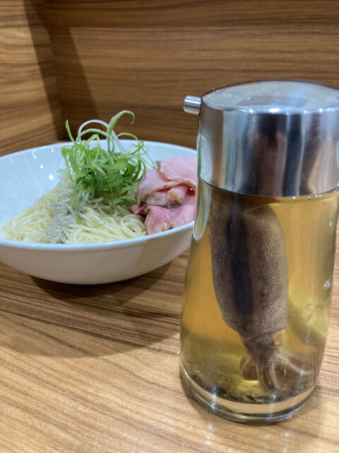 カエシに烏賊と牡蠣の旨味がプラスされており、ココに烏賊&煮干酢をお好みで加えれば、替え玉という名の立派なまぜそばへと早替わり。