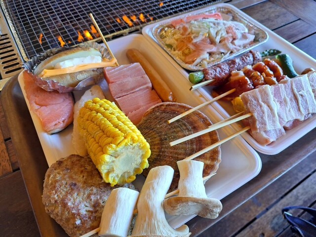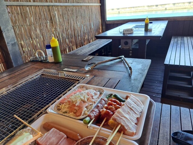 バイキング式で串物等を取って海の綺麗なところで手ぶらでBBQです!