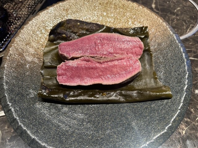 厚切り塩タン:そのまま昆布〆されておりまずはそのまま食べるように言われ酢橘をかけて食べたが酢橘とタンの相性抜群、わさび付けるとさらに美味しかった