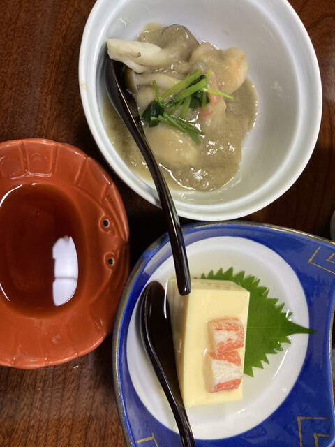 ほぐしたカニの身と銀杏などを甲羅に入れ揚げてある料理です。レモンをちょっとかけて半分はそのまま頂き残りは専用のソースを付けて食べるのが好きです。