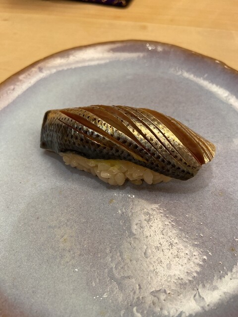 サヨリの昆布締めおぼろのにぎり 芝海老のたまご