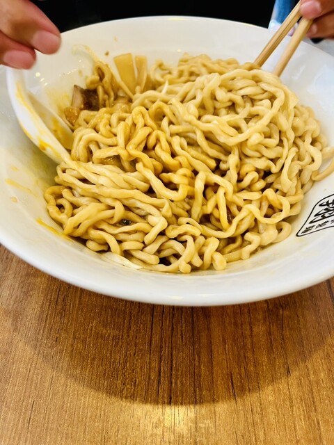 ワシワシ麺を混ぜる混ぜる!