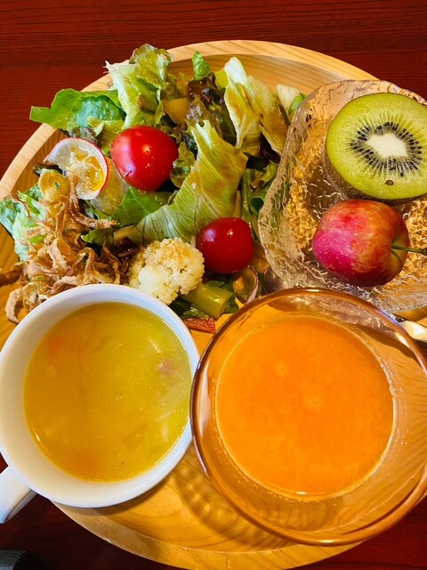 朝食 サラダとベジタブルスープにフレッシュジュース