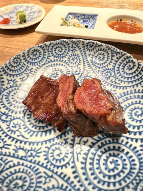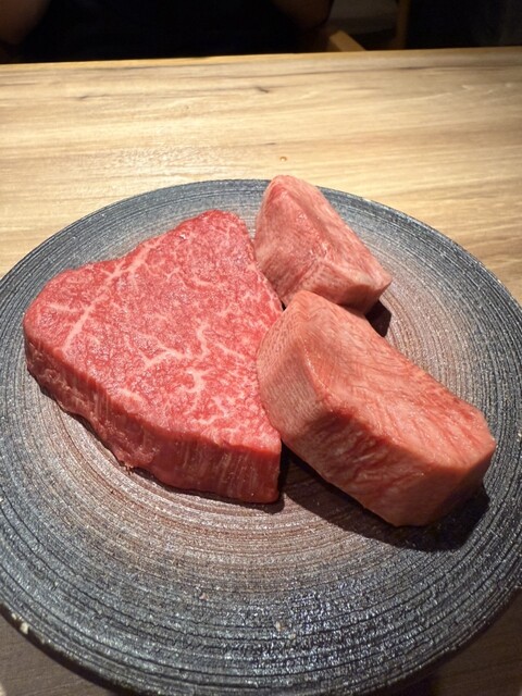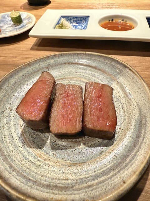 段違いにサシが綺麗で食べる前から美味しさが伝わってくる。じっくりと余熱で焼いたシャトーブリアンの柔らかい焼肉は、和牛本来の旨味や脂の甘さを最大限に引き出した一品。