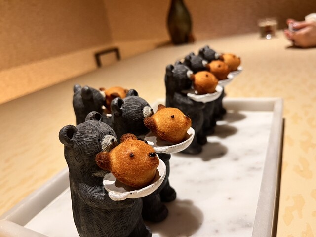 クマに癒されながらアシェットデセールを楽しめるお店でした。目の前で作っているところを見ながら美しく美味しいデザートを楽しむことができました。